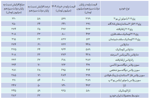 با توجه به قیمت جدید محصولات ایرانخودرو و مقایسه آن با قیمتهای پایان دولت سیزدهم مشخص میشود که در دولت پزشکیان تاکنون قیمت خودروهای داخلی بیش از ۶۰ درصد افزایش یافته است. از لحاظ ارزش نیز قیمت محصولات ایران خودرو نسبت به پایان دولت سیزدهم به طور متوسط ۲۸۲ میلیون تومان گران شده است.