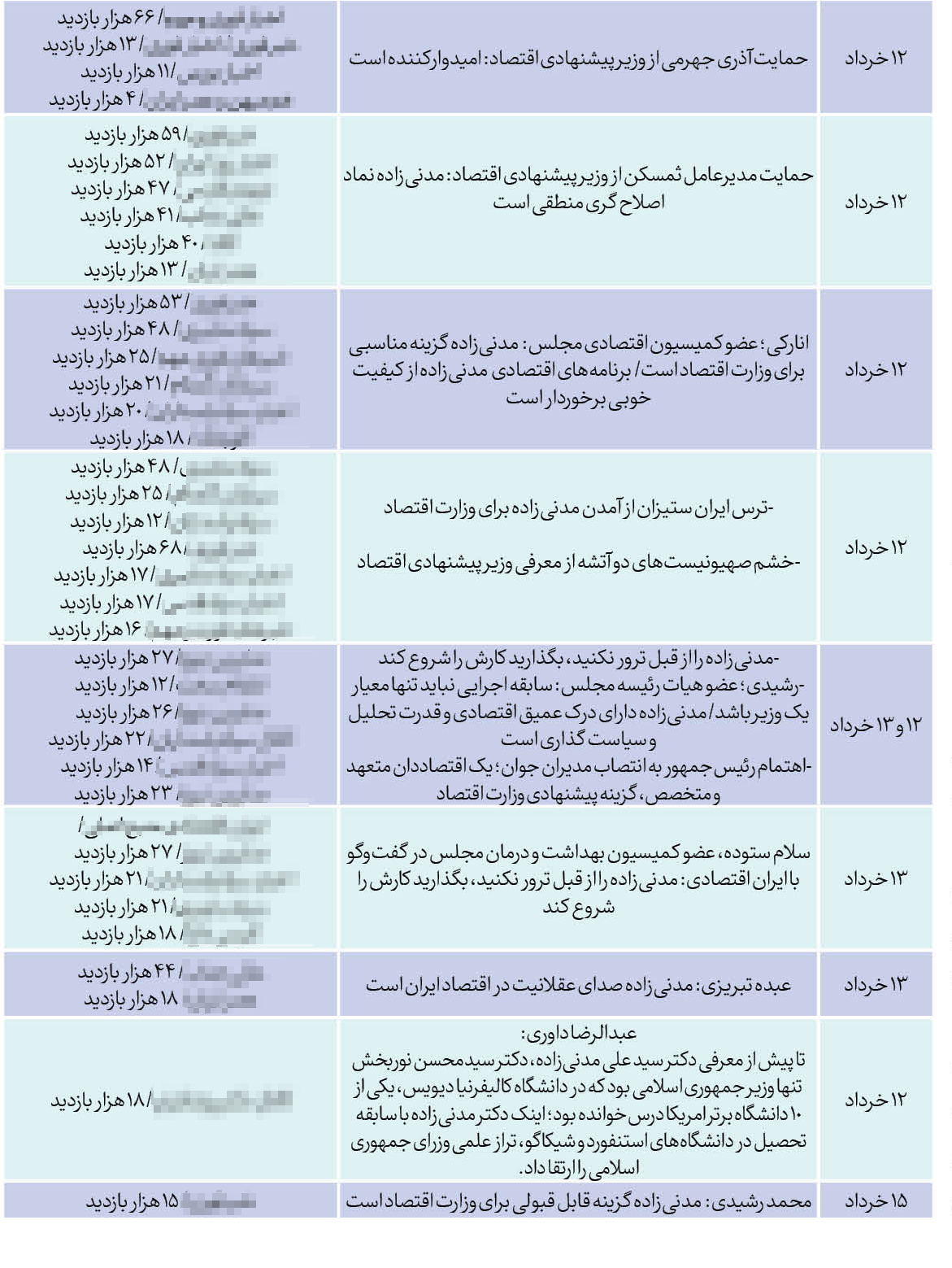 بررسی کلیدواژههای جریانهای خبری مثبت درباره مدنی زاده؛ گزینه اعلامی برای وزارت اقتصاد نشان میدهد که در کانالهای تلگرامی برخی مفاهیم کلی و اخلاقی درباره این فرد تکرار شده است. کلماتی همچون فضای علمی، علمی و عملیاتی، عدالت محور، حل مشکلات اقتصادی تنها کلماتی هستند که موافقان توانستهاند بر موج آن سوار شوند. درواقع دلایل موافقت با این فرد صرف تکیه بر کلمه علمی بودن است.