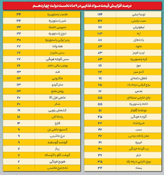 در ۹ ماه نخست فعالیت دولت چهاردهم قیمت مواد غذایی به شدت افزایش یافته است.