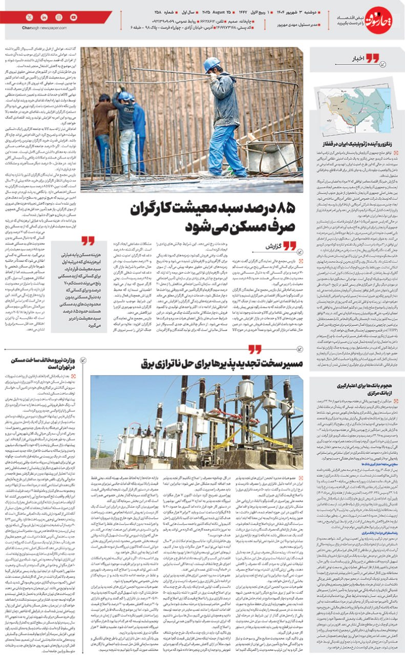 شماره ۲۵۸- دوشنبه ۳ شهریور