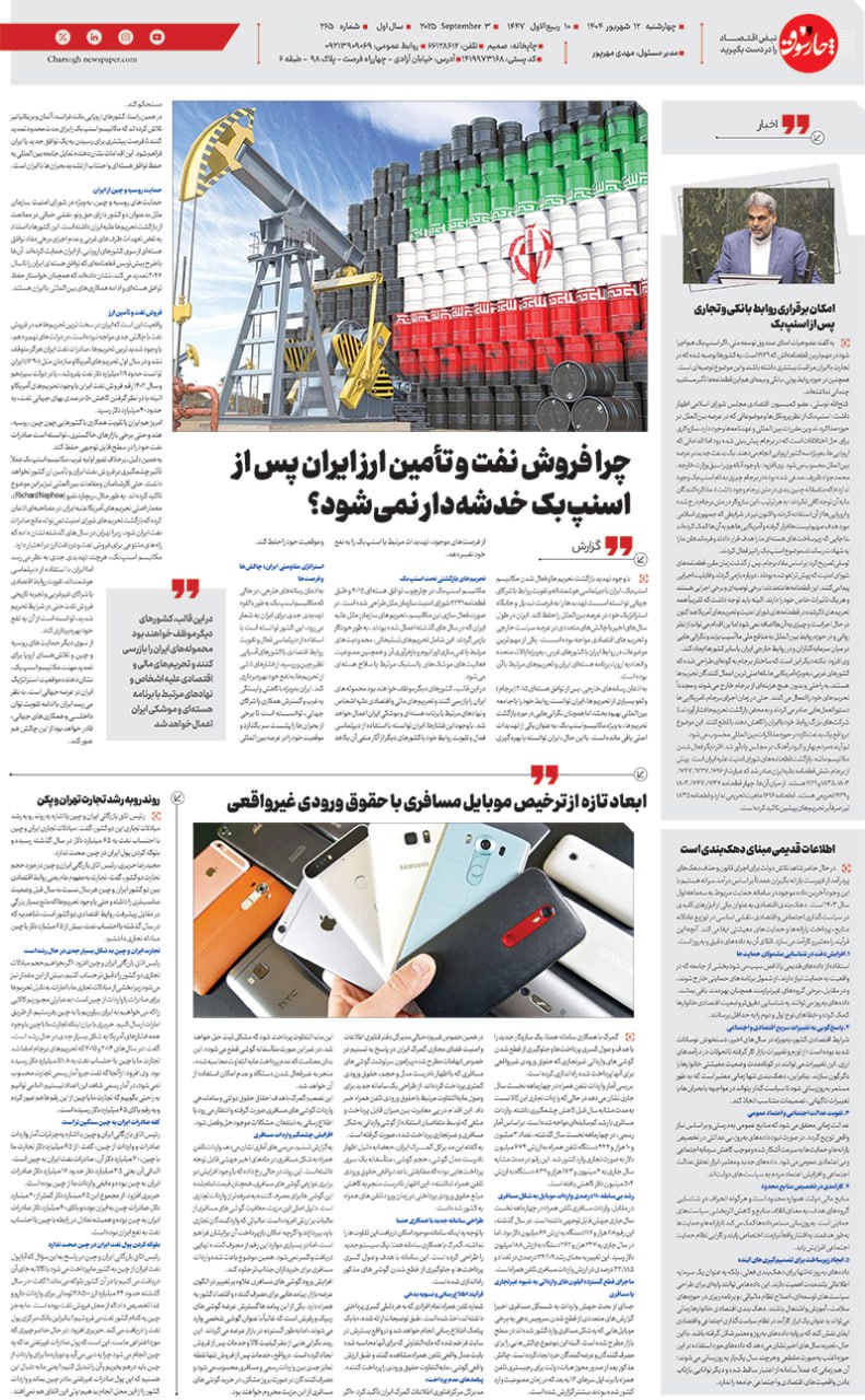 شماره ۲۶۵- چهارشنبه ۱۲ شهریور