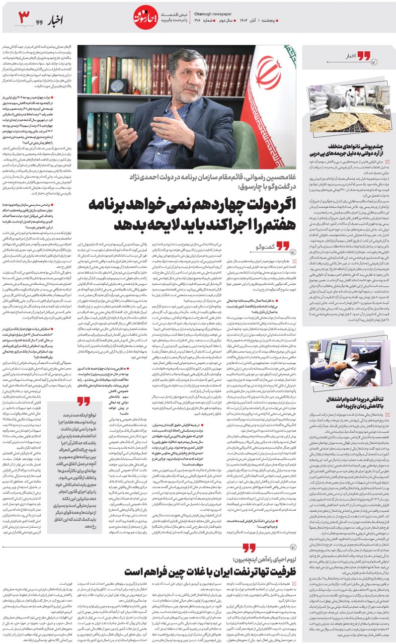 شماره ۳۰۶- پنجشنبه ۱ آبان