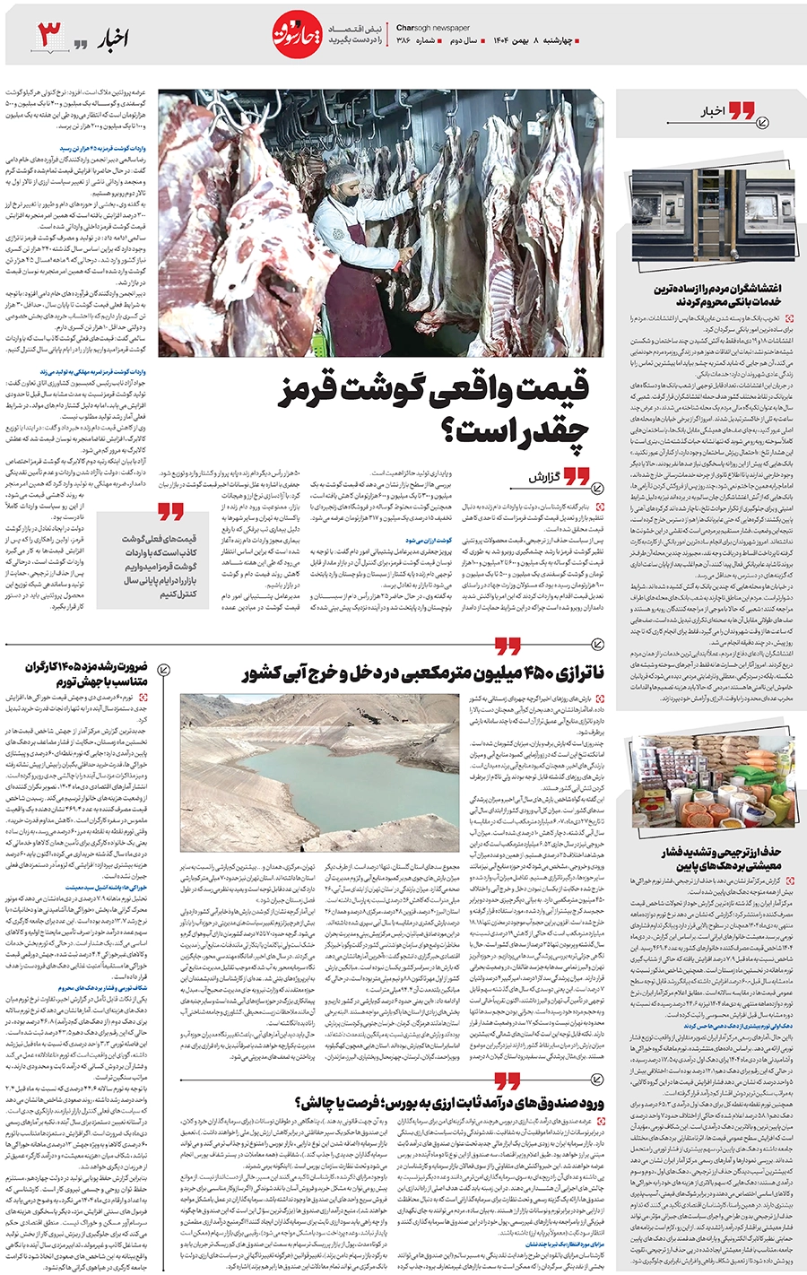 شماره ۳۸۶- چهارشنبه ۸ بهمن