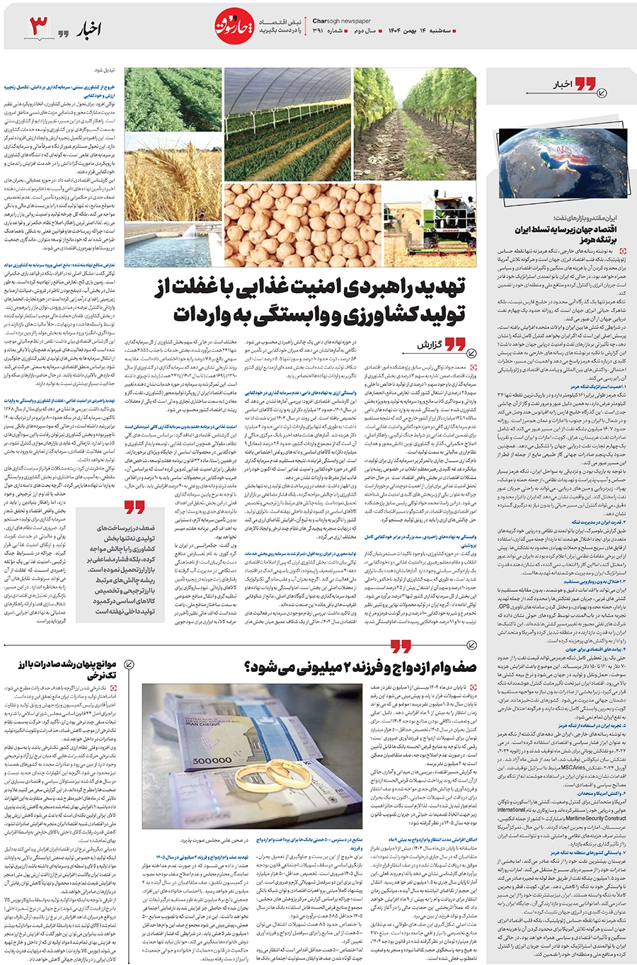 شماره ۳۹۱- سهشنبه ۱۴ بهمن